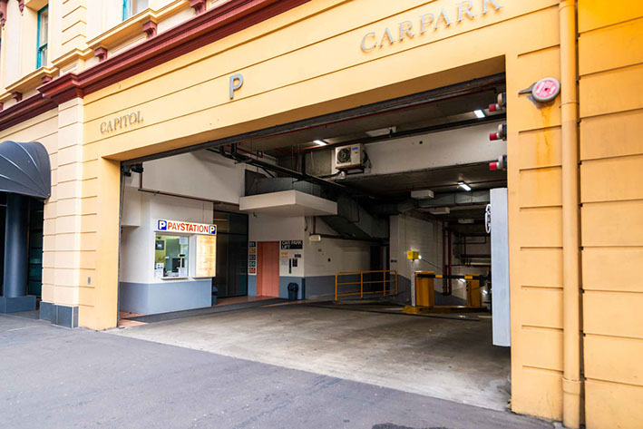 Located in Campbell Street right beside Capitol Square's Hotel and eat street of restaurants - next door to the Capitol Theatre. Direct access to lift from all levels for disabled users.