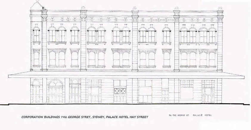 The Watkins’ Terrace was constructed in 1876 on a site bounded by Hay, George and Campbell Streets and Parker Lane, In the early 1990s, the whole block between Pitt Street and George Street became the Capitol Theatre Heritage Precinct. The Watkins’ Terrace was approved for partial restoration and redevelopment as part of the precinct by First Scope Development Pty Limited.